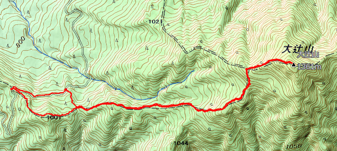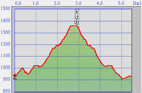 出発7:20-長尾山登山口9:08-長尾山9:20-本道登山口分岐9:28-稜線分岐10:46-大辻山山頂11:08~12:13-稜線分岐12:25-本道登山口分岐13:10-本道登山口13:15-長尾山登山口13:25~13:45-帰着15:30